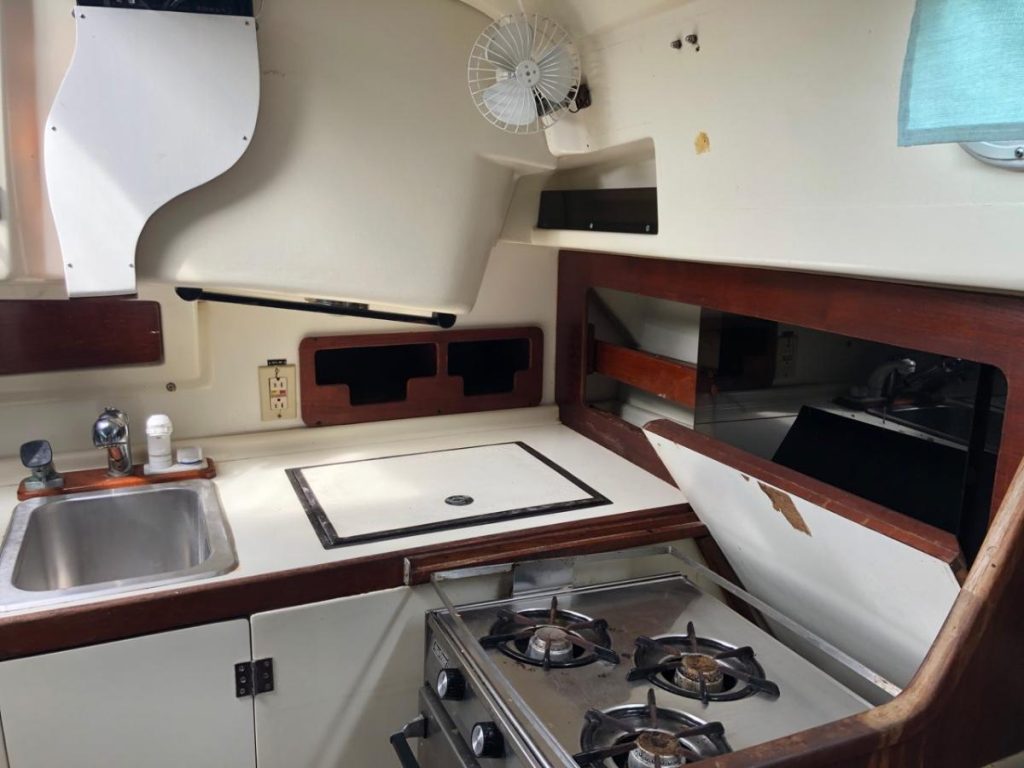 Salt water pump for outdoor hose and indoor sink, new galley faucet, all new lights outside.