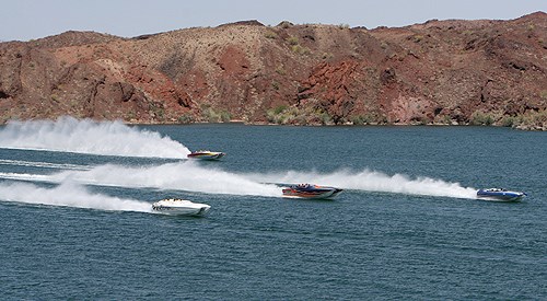 Desert Storm Shootout: Drivers run a two-mile course starting near the Site Six Launch Ramp south along the California side of the lake. 30 different classes will be competing with over 67 runs, and the speeds are breathtaking! Best viewing for the Shootout will be on the surrounding bluffs on the Island near Site Six to Spectator Point.