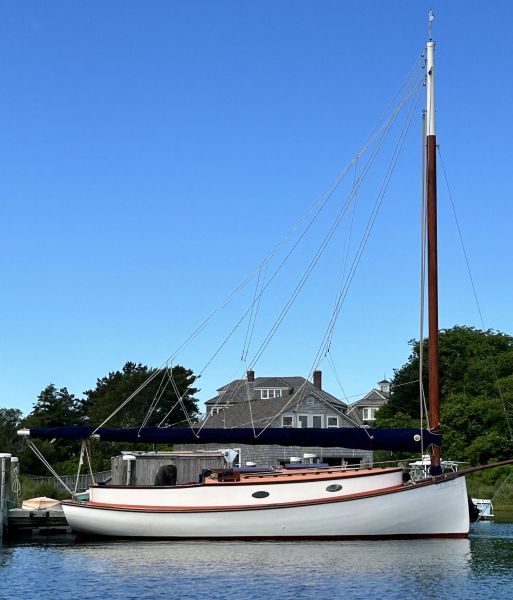 TIGRESS 30’ 1927 Charles Anderson Catboat. Has standing headroom. One of the biggest catboats still sailing. 12’6” beam, 3’2” draft, 11 tons displacement. 38’ Aluminum mast faux-painted to look like wood. 2002 Beta 38hp diesel. Winner of 2008 Broad Axe Award after complete restoration by Tom Townsend, Mystic, CT. Underslung rudder with centerboard. Stunning interior with lovely details. Stored indoors in Westport, MA.