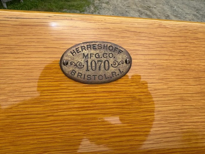 The Herreshoff Manufacturing Company took the first orders for the 12½ footer in 1914 and built 364 wooden hulls through 1943. Following the closing of HMC production, the Quincy Adams Yacht Yard was licensed by HMC to build the design. Quincy Adams used the Herreshoff builder’s plate, and built 51 hulls from 1943 through 1948. The Quincy Adams boats had hull numbers in the 2000s, and were planked with mahogany rather than the white cedar used by HMC. They also have something of a reverse sheer forward.