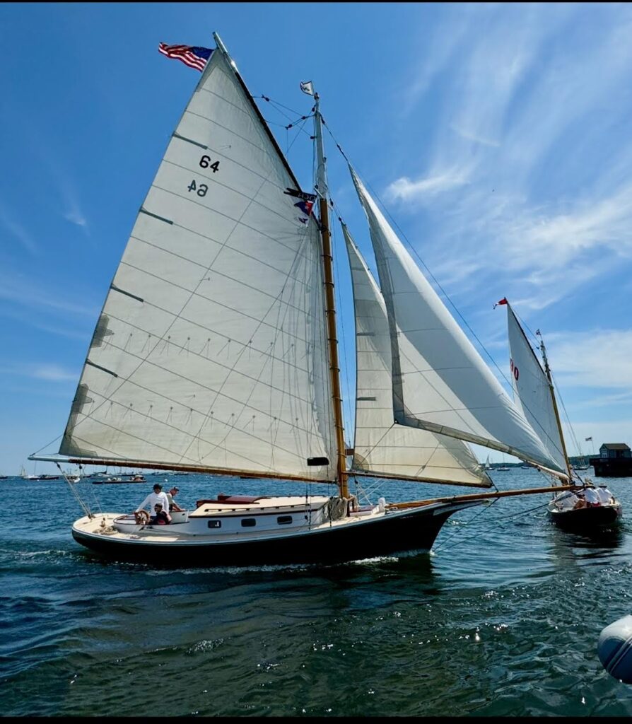 Amicitia, Friendship Sloop Sail # 64, was built by Lash Bros., in Friendship, in 1965, to a design by John Alden, one of the most prominent naval architects of his time. She was built for Dr. Francis Colpoys of Milton, MA, and finished by Simms Yacht Yard, in Scituate, MA. She was built alongside Voyager (II) being built for Bernie MacKenzie, and under his tutelage. Bernie was a marine surveyor, and the founder of the Friendship Sloop Society. He had owned the original Voyager (Sail #1) built in 1906.