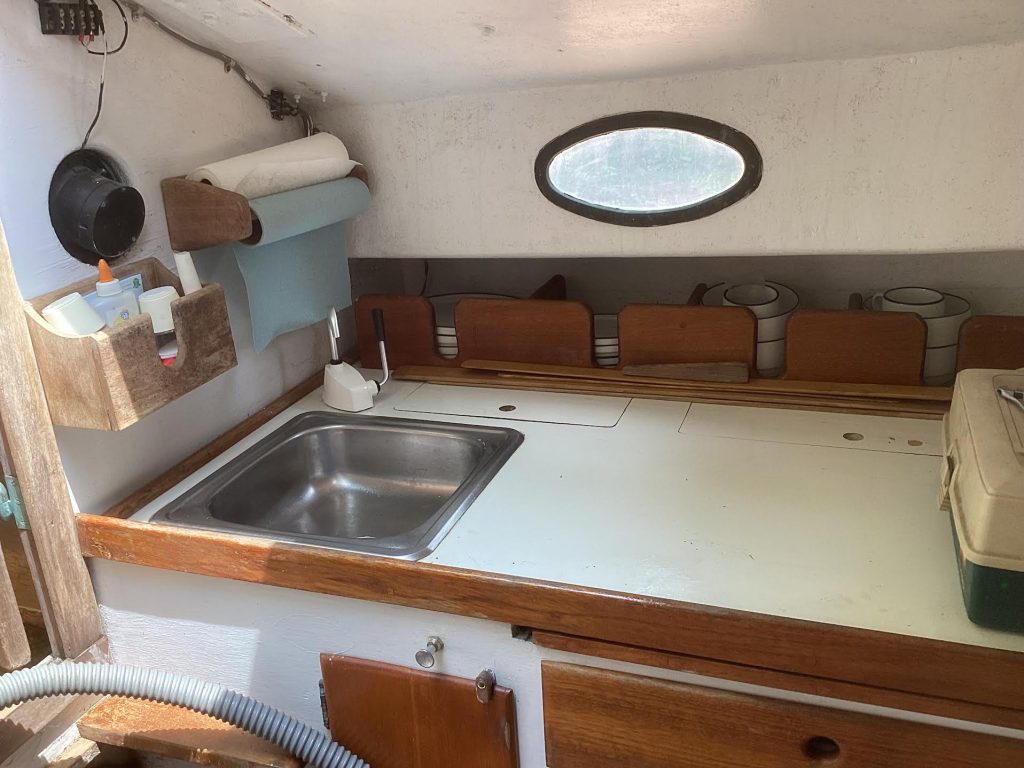 1977 Marshall 22 in good overall condition. It has a rebuilt Gray Marine four cylinder gas inboard that runs nicely, life jackets, fenders , dock lines etc.; cabin cushions and cockpit cushions all in very good shape. The sail is in good condition and was recently totally restitched. Dodger frame but the dodger needs work. Several anchors and line are included. This boat could be launched , rigged and sailed today.