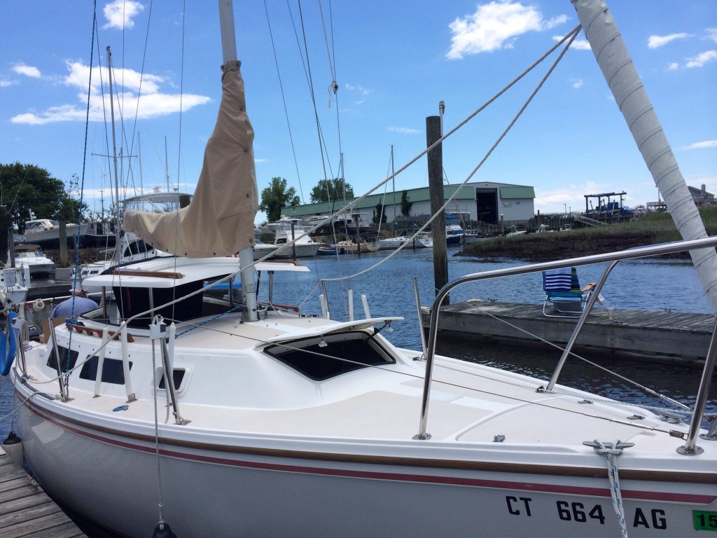LOA 25’/Bean 8’/Draft 4′ Main Sail and Roller Furling 150 Genoa. Outboard 2003 Yamaha T 9.9 High Thrust, 25″ extra long shaft, electric start.