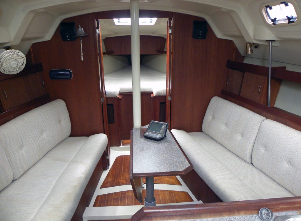 [ ]         Satin finish selected teak & hardwood trim                                                                                                                                                                                                                [ ]         Finished teak & holly cabin sole                                                                                                                                                                                                                                    [ ]         Pyle marine AM/FM/CD/DVD player, remote control                                                                                                                                                                                            [ ]         Four Thunder marine speakers (2 mounted inside in main salon / 2 mounted  outside in cockpit)                                                                                                              [ ]          Four (4) lock-down ports                                                                                                                                                                                                                                                [ ]         All interior ceiling lights and reading lights upgraded to LED lights in both cabins, main salon and head                                                                                                  [ ]         Upgraded clear plexi forward hatch with solar fan drive heat exchanger                                                                                                                                                            [ ]         Mid-cabin adjustable hatch                                                                                                                                                                                                                                            [ ]         Convertible folding dinette table w/new laminate countertop                                                                                                                                                                                [ ]         “L” shaped settee                                                                                                                                                                                                                                                                [ ]            Hanging locker                                                                                                                                                                                                                                                                [ ]           Ship’s bell                                                                                                                                                                                                                                                                          [ ]         Navigator’s station                                                                                                                                                                                                                                                            [ ]         Fully upgraded electrical AC / DC console panel at nav station                                                                                                                                                                              [ ]         Upgraded LED chart table lights                                                                                                                                                                                                                                    [ ]         Davis Vantage Vue weather monitoring back-lit console  (portable)                                                                                                                                                                    [ ]            Original dry-cleaned fabric cushions throughout (w/new foam i