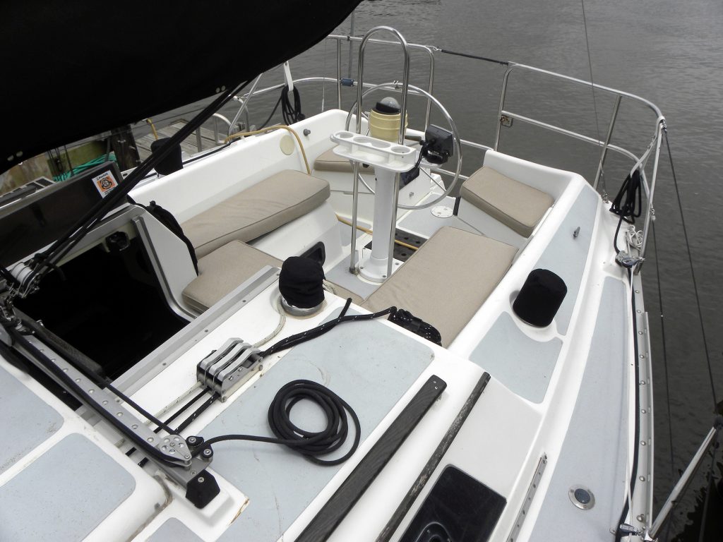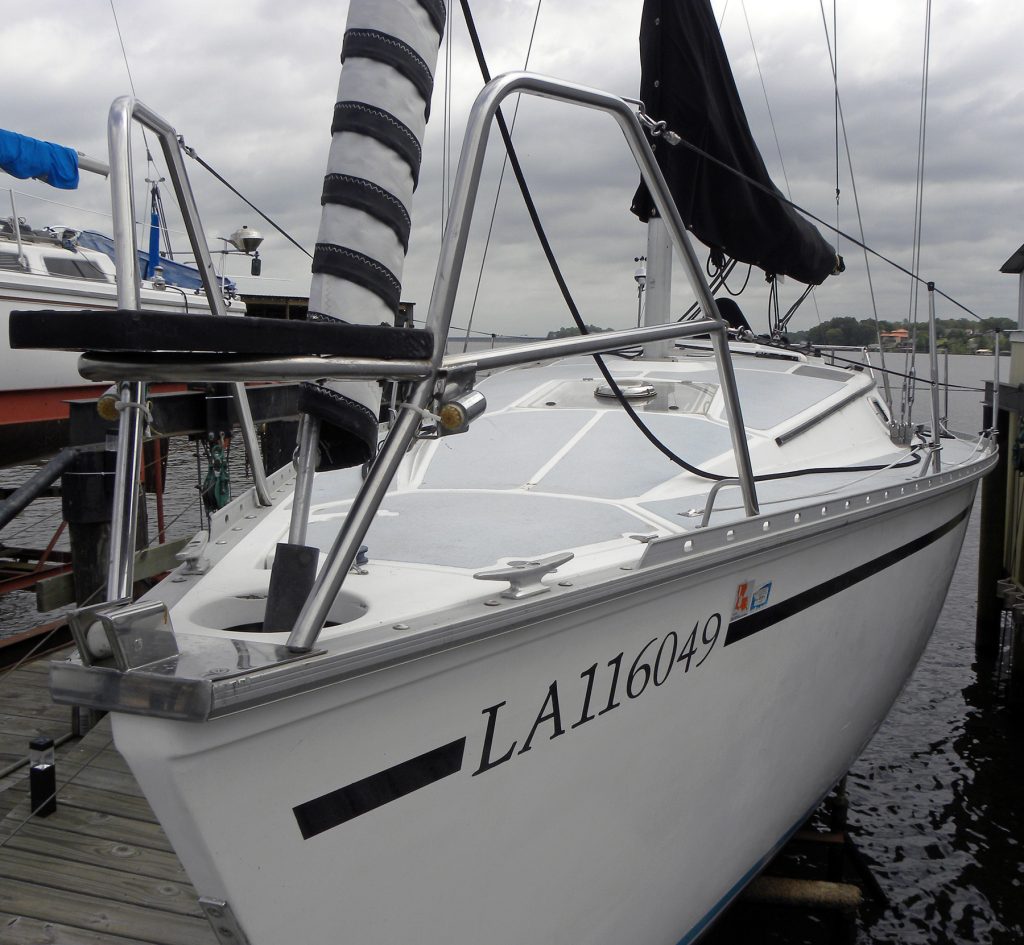 [ ]         Steel diamond pattern bow pulpit                                                                                                                                                                                                                                  [ ]         Stainless steel stern rail                                                                                                                                                                                                                                                    [ ]         Double lifelines                                                                                                                                                                                                                                                                  [ ]         Mooring horn cleats each side fore & aft                                                                                                                                                                                                                      [ ]         Wood handrails                                                                                                                                                                                                                                                                  [ ]         Bow below-deck anchor well and fresh water intake                                                                                                                                                                                                [ ]         Bow anchor roller                                                                                                                                                                                                                                                              [ ]         Adjustable cabin skylights – forward cabin, main salon                                                                                                                                                                                            [ ]         Molded in two-tone non-skid deck freshly painted with industrial marine non-skid deck paint                                                                                                                    [ ]            Schafer mainsheet traveler                                                                                                                                                                                                                                          [ ]            Original removable contoured cockpit transom/helmsman seat w/teak trim                                                                                                                                                  [ ]         Stainless steel drop down swim ladder                                                                                                                                                                                                                        [ ]         All exterior running lights upgraded to LED                                                                                                                                                                                                              [ ]           Two stern lockers w/2nd aft anchor and 100’ line