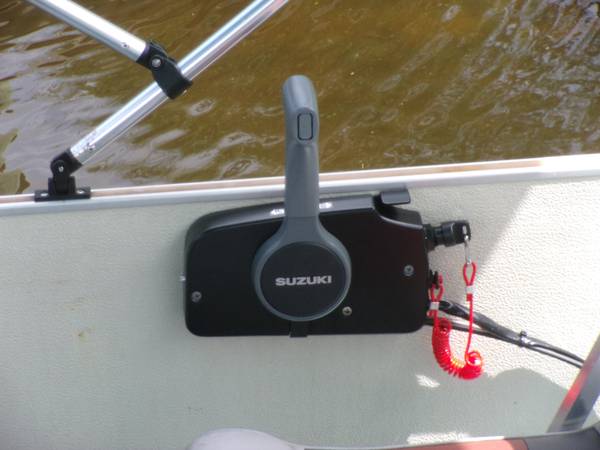 COMES WITH A BRAND NEW 2014 SUZUKI FOUR STROKE MOTOR WITH ELECTRIC START AND EFI. ( ELECTRONIC FUEL INJECTION) , BRAND NEW CONTROLS AND CABLES, NEW BATTERY AND BATTERY BOX, NEW STEERING CABLES, NEW SUZUKI FUEL TANK AND FUEL GUAGE. THIS MOTOR ALONE COSTS WITH CONTROLS , SETUP, INSTALLATION AND TAXES COSTS OVER $5,200. IT HAS APPROX. 2 HOURS USE HERE ON THE TURKEY CREEK…