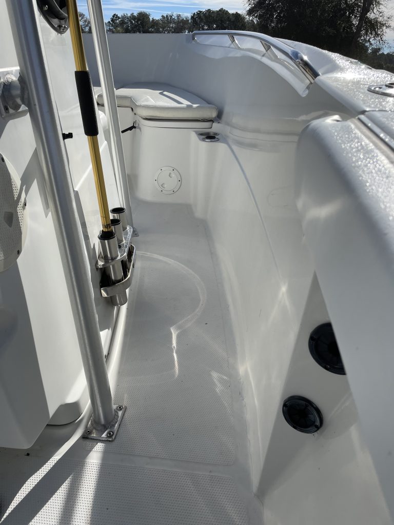 Sailfish includes as standard equipment stainless, in-gunwale rod holders, an automatic bilge pump, a low-profile bowrail, recessed rod and tackle storage, an integrated dive ladder, and hydraulic steering complete with a deluxe stainless-steel destroyer wheel with power knob. Anglers will appreciate the livewell with high-speed pickup in addition to the pump. You can even choose between pedestal seats and a leaning post as standard. And this is just scratching the surface of the standard-equipment list. About the only thing that should be standard that isn’t is trim tabs. However, they’re available as optional gear, along with a colored hull, T-top, spray curtains, leaning-post backrest, Yamaha digital gauges, 15-foot outriggers, and coolers – to name a few options.