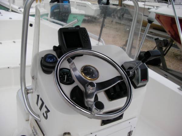 Angler 173 center console with 115 Optimax Mercury, aluminum trailer, has COLOR GARMIN GPS- fishfinder , bimini top , swim platform ,live well ,large bow cushion for the ladies too ! just had Mercury service with water pump . Only 201 hours .