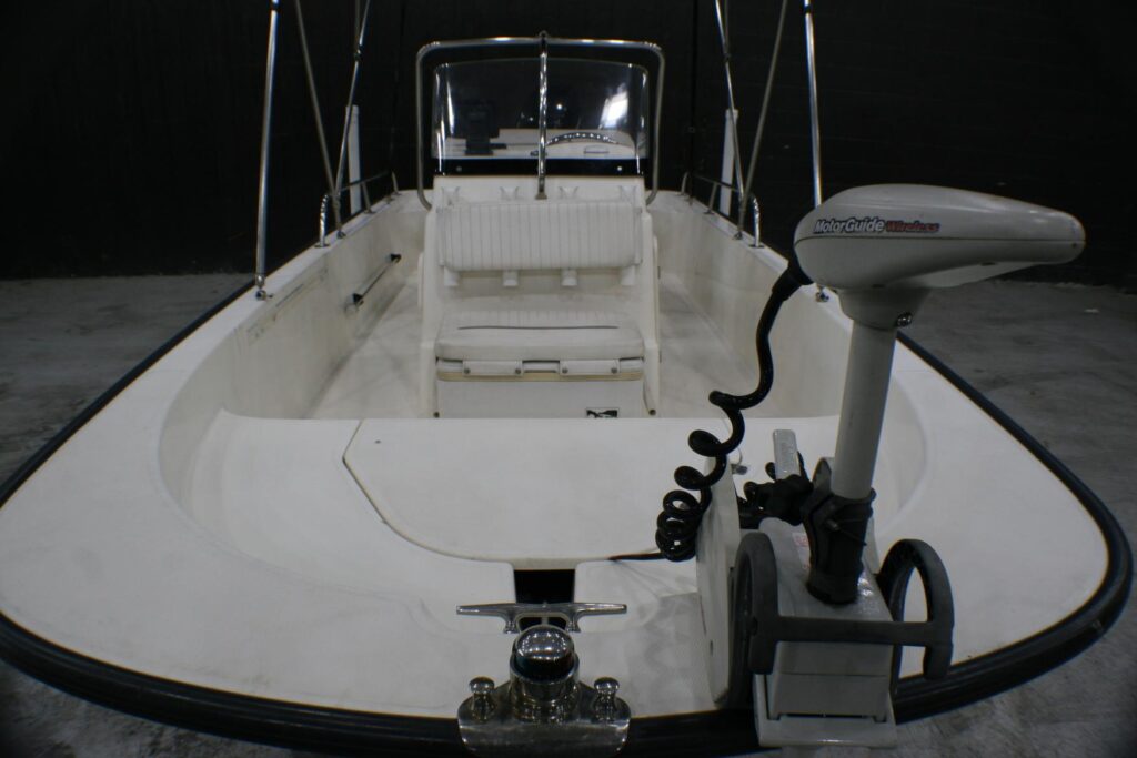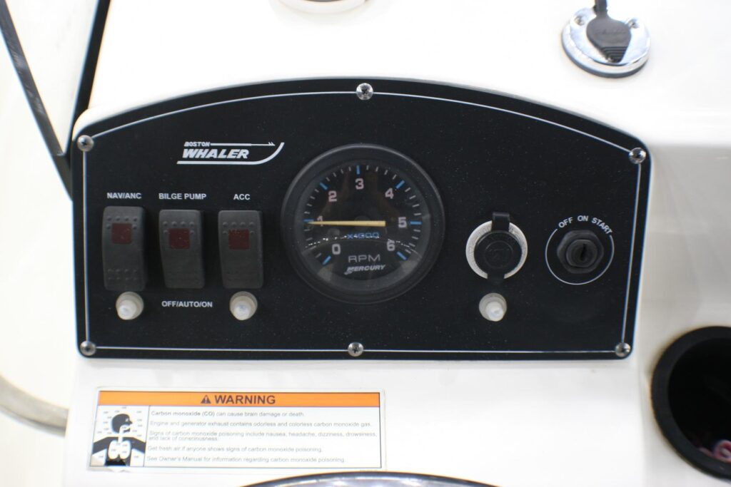 Powered by a dependable 60 HP Mercury outboard, this Whaler gets up and goes while sipping fuel. A MotorGuide trolling motor makes it perfect for sneaking up on fish, and the single axle galvanized trailer makes transport and storage a breeze.