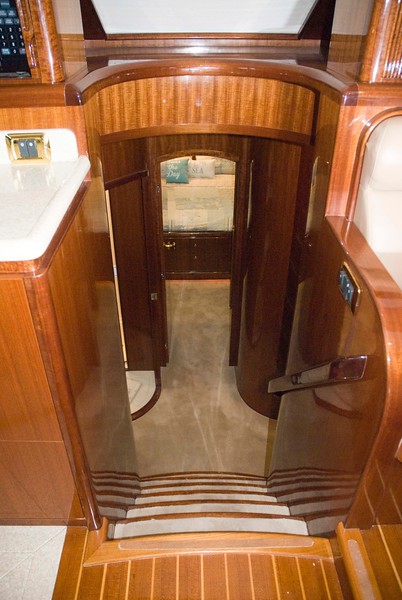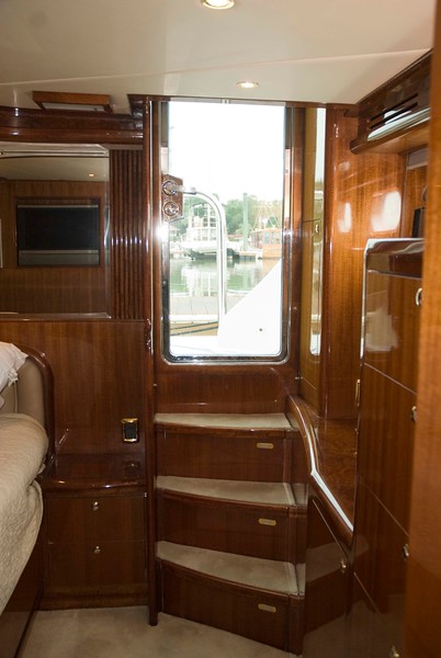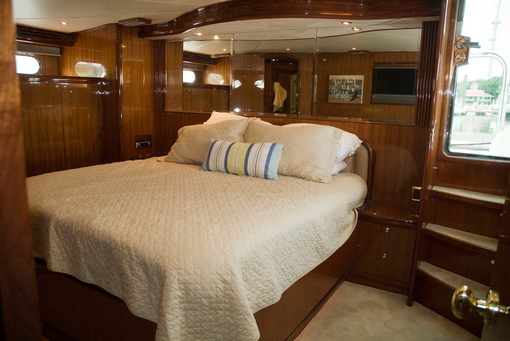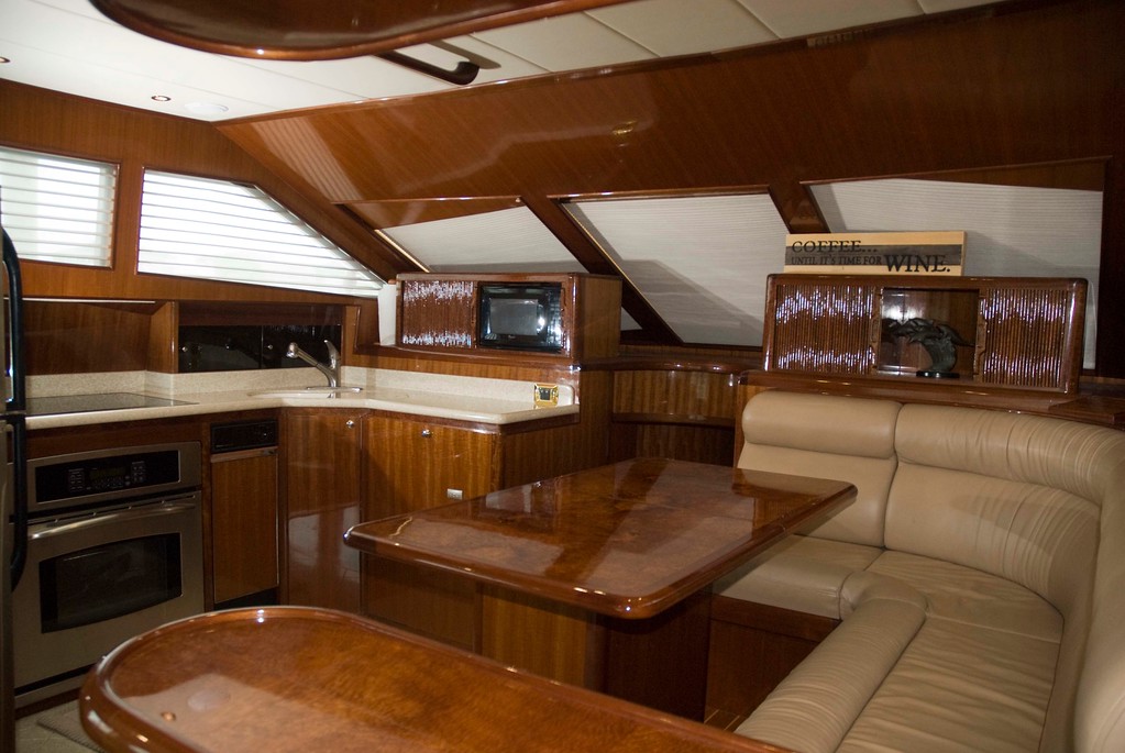 The salon and galley are bright and open with high gloss cherry wood thru out the entire yacht.
