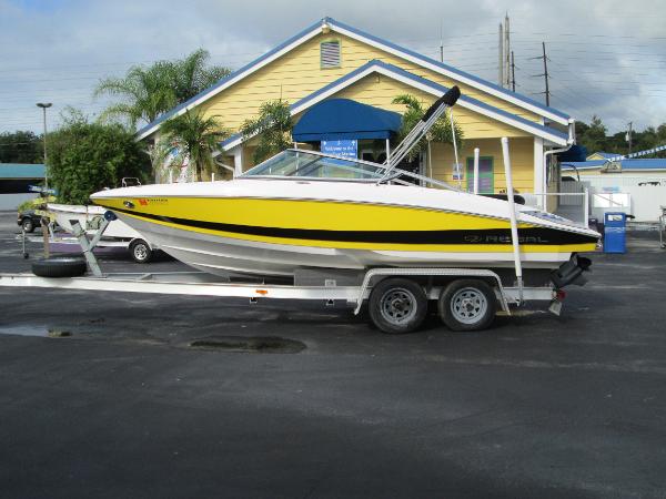 VERY NICE regal 2100 , 117HRS bimini top, trailer custom hull color and teak cockpit table. A perfect boat for the family to enjoy and a blast to drive!! The Regal’s 2100 FasTrac, was bred to be lighter, faster, stronger and more fuel efficient than anything before it. There are three basic factors at work in performance and every builder has them: propulsion, hull design and weight. Since all manufacturers use the same basic powerplant packages, it leaves the latter two as key differentiators. In those categories, the 2100 wins hands down. Regal’s award-winning FasTrac hull features a full mid-beam step, which forces air beneath the hull when underway and reduces drag. These hydrodynamics, combined with a specially- formulated lamination schedule and composite framework enables the 2100 to run faster and deliver better fuel economy than any boat in its class.This boat was designed with two cockpit versions. The discerning eye will notice that coaming panels are upholstered and contoured, not plastic and edged. Bow seats have been contoured to meld perfectly with backsides, and variable-position armrests have been added to make the bow the place to be. Add to the mix a go-fast RS or wakeboard-hungry RX package, over 60 gelcoat color schemes, ingenious uses of storage space, 3 choices of interior color packages and 25 optional features, and the 2100 becomes as individual as the owner.