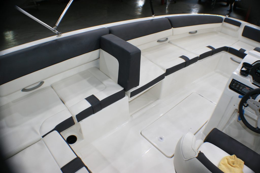 This boat was designed with your comfort and convenience in mind. Enjoy the convenience of built-in storage compartments for storing your gear, snacks, and personal items. The helm station is thoughtfully laid out with easy-to-read gauges and intuitive controls, allowing you to navigate effortlessly.