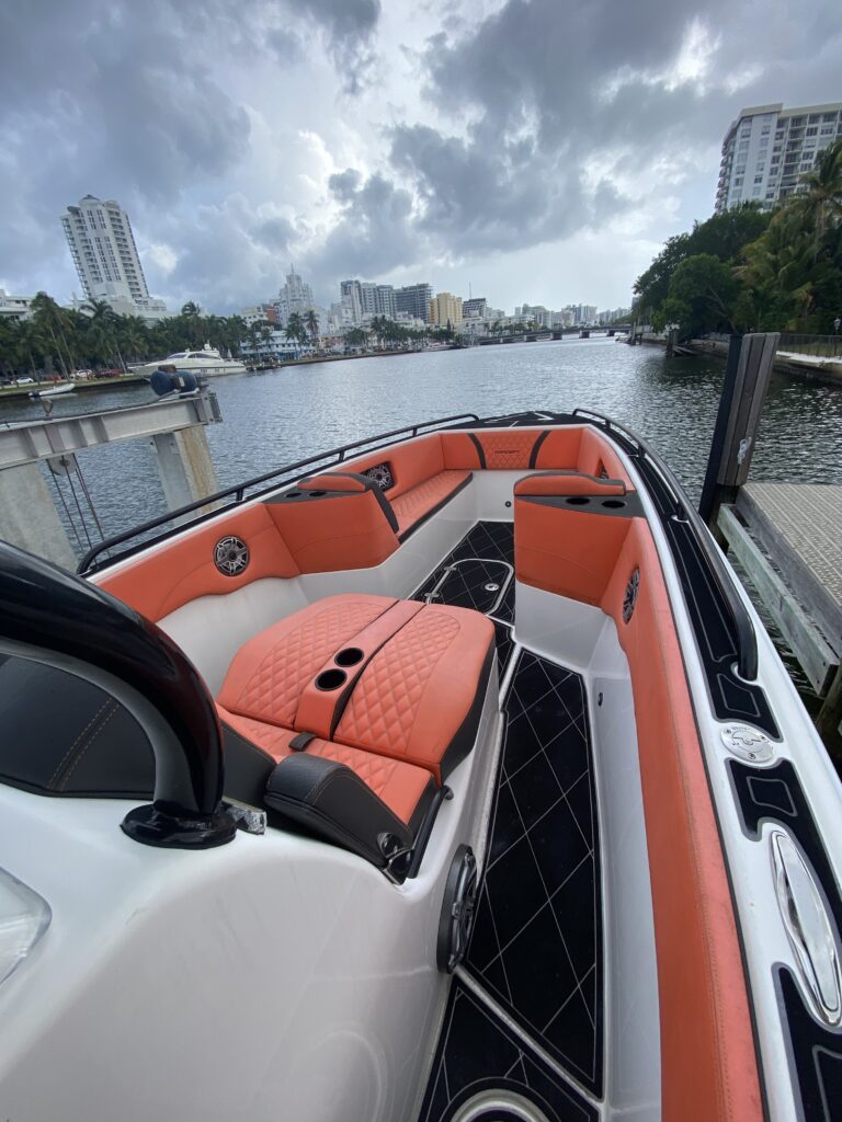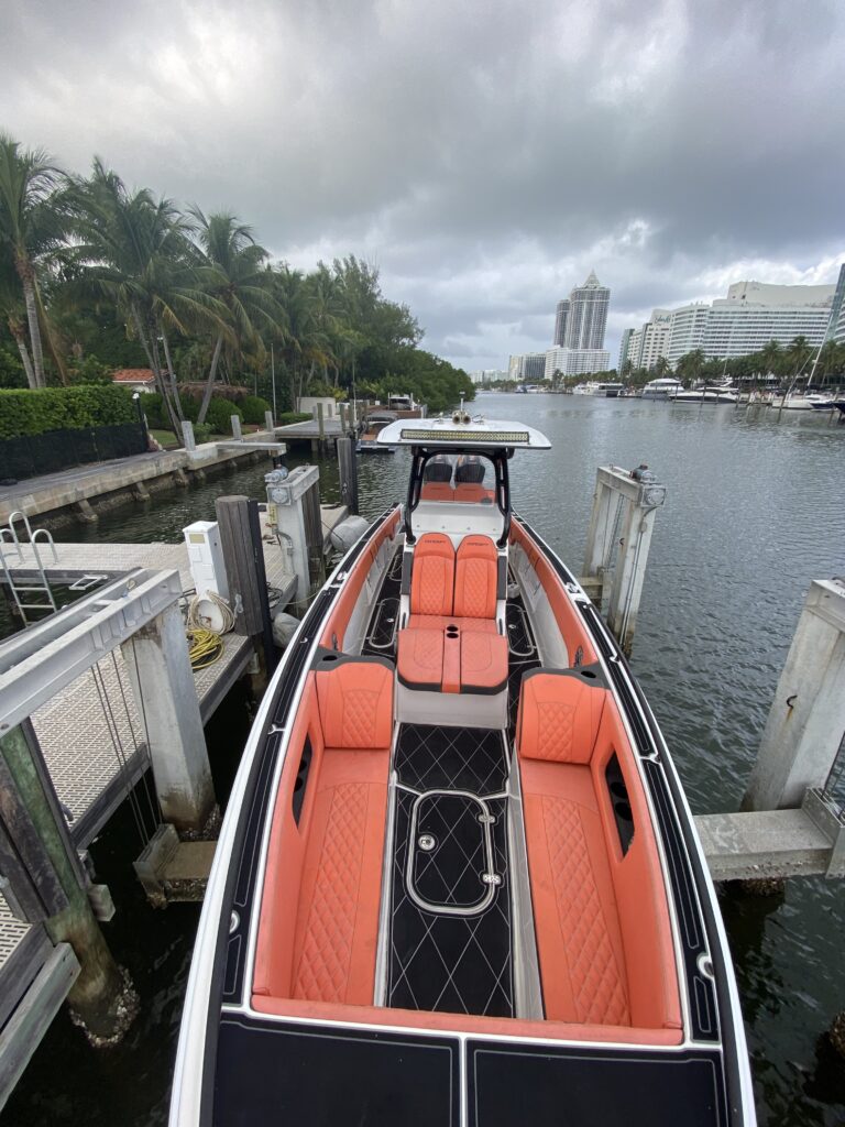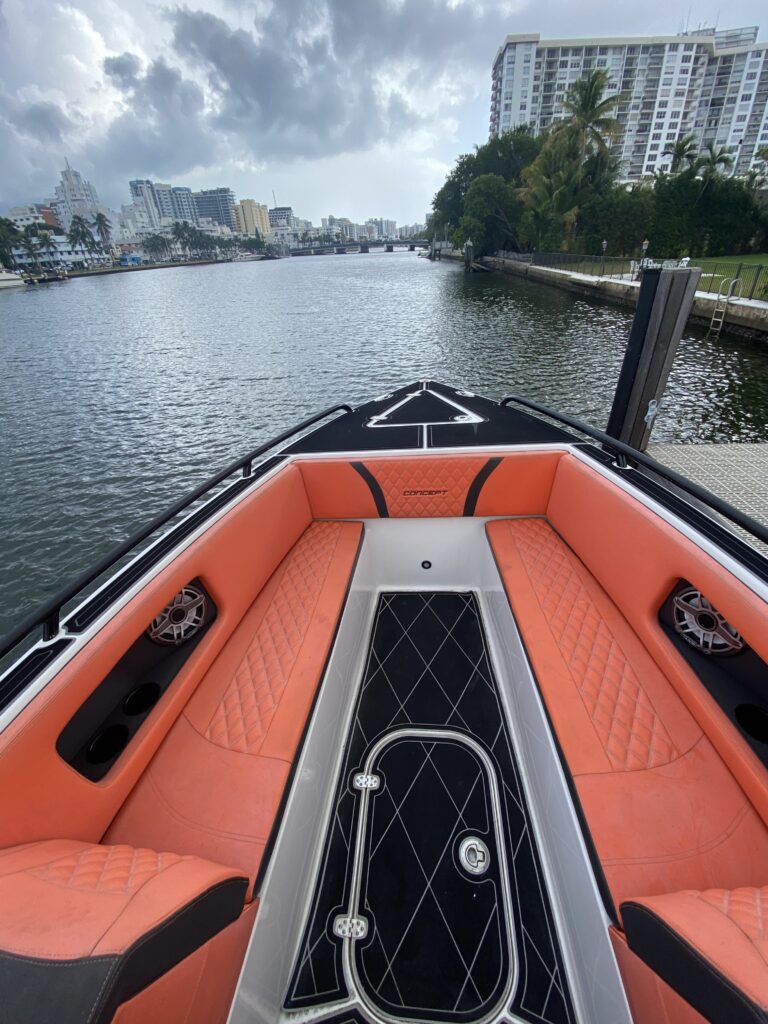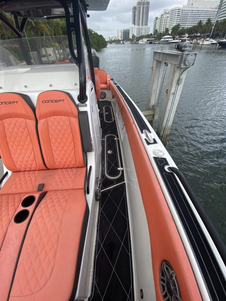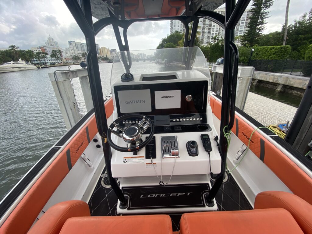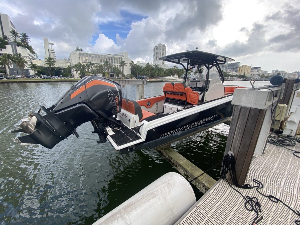 Lift-kept and lightly used, this 2021 Concept 32 Open Deck is a perfect combination of performance, style, and reliability. Powered by twin Mercury 450R outboards, it delivers exceptional speed and handling while maintaining Concept’s legendary dry, stable ride.