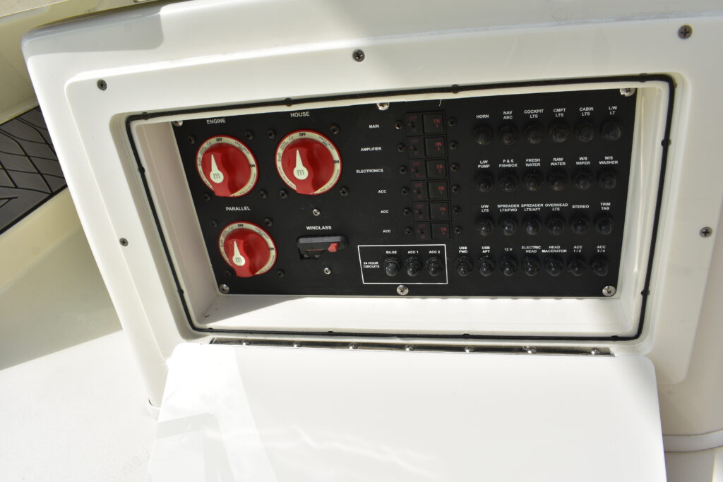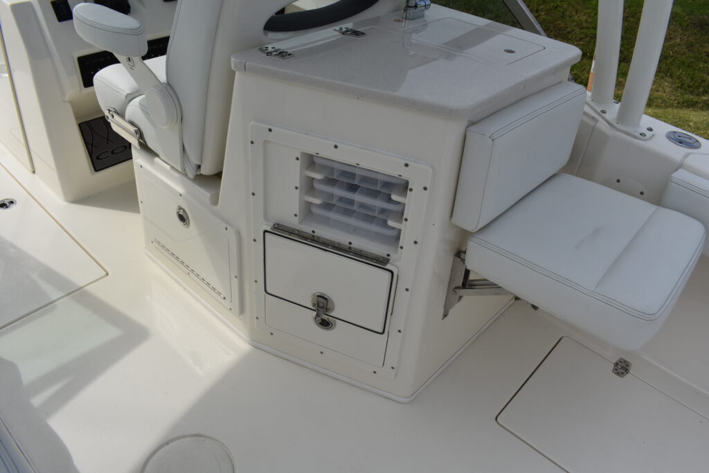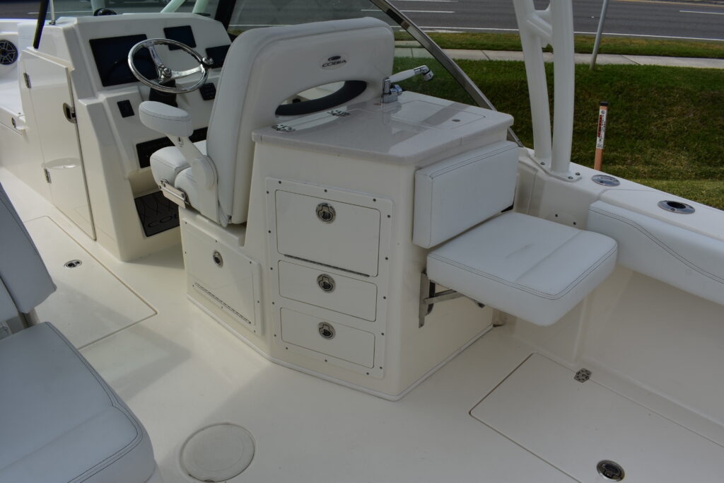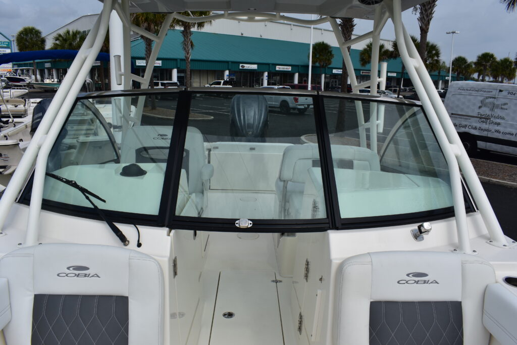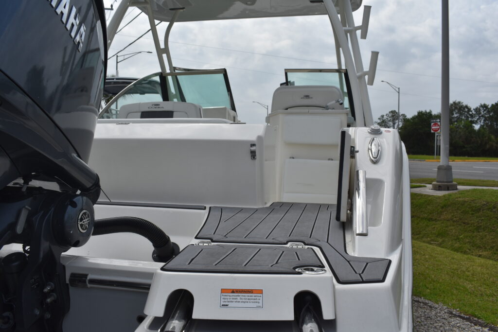 2023 Cobia Boats 240 DC, Powered with a Yamaha F300 with Helm Master EX DES, this beautiful Whisper Grey boat features the following upgrades: Stainless Steel Edson steering wheel with Power Knob, trim tabs & indicator, two tone hull (grey & white), grey & black faux teak deck mat on the console floor and swim platform, hard top, aft sun shade, JL Audio Stereo with amp & 8 speakers, raw water washdown, forward table and sun lounge, GPSMAP 8616 XSV with Airmar B60M Transducer and VHF antenna, fish box pump out with macerator, deluxe windlass with chain, 300′ rode, anchor & stem chafing guard and wireless remote, matching hardtop color (underside), powder coated console, white rub rails with stainless insert, 3 bank battery charger, 2 series 31 batteries 2023 Cobia Boats 240DCThe 24 Dual Console You’ve Been Waiting For.The most feature packed 24 foot dual console on the water! From its spacious and clean layout to its wealth of smart amenities, the new Cobia 240 DC beckons you to a relaxing, sun-drenched day on the water. Dedicated seating with deluxe, Bentley-style upholstery for nine, including a hideaway aft bench and a convertible first-mate’s chaise lounge, means everybody on board will ride in style and comfort. Additional standard family features include a hardtop with LED down lighting and ski pylon, walk down head with sink, Corian countertop and macerated electric head, and an extended swim platform with hidden telescoping ladder. It even comes with a standard bow boarding ladder and the option for a plug-in bow table. But just because comfort is at a premium it doesn’t mean that the serious angler is forgotten. This boat expertly melds all its soft touches with standard fishing features like dual in-floor 24 gallon fishboxes (macerators optional), a 22 gallon fully plumbed livewell, plenty of rod and tackle storage, and a bait prep area with sink. Combine all this and there’s no better looking, more feature rich and better performing 24 foot dual console on the water.Features may include:Steering and HandlingHydraulic tilt steeringPropTrim tabsYamaha fuel/water separator & control cables (w/ engine option)Quality Finish and ConstructionPremium fade-resistant gelcoatStainless steel rub railStainless steel thru-hulls w/ seacocks below water lineFamilyBoarding ladder (covered stern, hideaway bow)Cockpit bolsters (aft)Cushion, bow (8 pc set)Electric head w/ maceratorFresh water at transom (9 gal tank for 2 sinks and shower)Fresh water sink in head & prep stationHead comfort appointments (tp holder, mirror)Hideaway aft bench seatingInsulated cooler in port lounge (91 qt)Integrated ski tow pylon on towerPlush seating for up to 9 passengersPrep station w/ sinkRoomy walk down head area with sink and Corian topSwim/dive platform extendedT-top fiberglass hard top (w/ spreader llight & rod holders)Tri-color platinum cushions with custom Bentley stitchingUSB outlets and cupholders throughoutFishingCockpit insulated fish boxes (2, 24 gal)Livewell (22 gal)SS gunnel rod holders (2 port, 2 stbd)Cockpit and StorageAnchor lockerHelm seat premiumSelf-bailing cockpitSafety, Comfort and ConvenienceBow rail (fully recessed)Cockpit lights, compass & helm footrestConvertible lounge seatingRear seating w/ backrestSS flush mount pull-up cleats (7)Standard all glass wraparound windshieldLights and ElectricSS flush mount flip-up bow lightWaterproof Deutsch electrical connectors