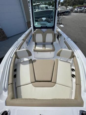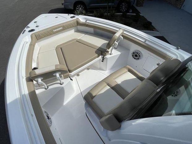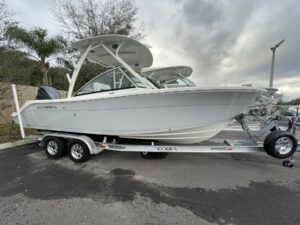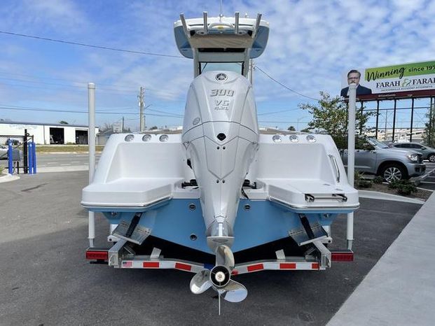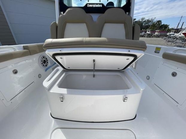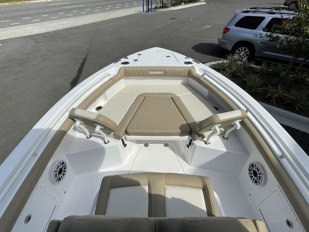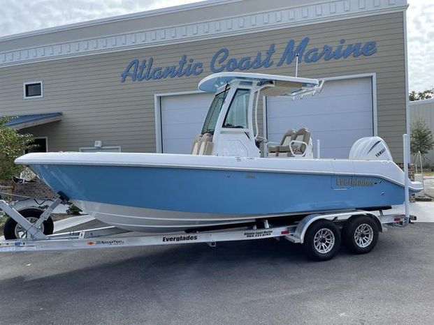 2023 Everglades 235CC, 2023 235cc Everglades (Sky Blue) – Yamaha F300 (White) w/ Digital Electric Steering – Garmin 12 inch Touchscreen 8612XSV Chart Plotter, B175 High-Wide transducer – 2 aft livewells – Fiberglass Hardtop T-Top w/ Ski Pylon 4 rod holders spreader lights – Premier Audio Package JL Audio Speakers amp & subwoofer – Fusion 770 control head with bluetooth – Stainless Steel Steering Wheel – Head compartment with Porta potty, lighting, storage, flooring, lockable door – Full cushion package (tan) bow seating w/ forward facing backrests – fold out jump seats aft – swim platform with step ladder – side utility door with ladder – stainless drink holders – Helm seat tackle station, swivel seat. – Windlass anchor system – center cooler in front of console – Aluminum Ameratrail Trailer – and more… CALL TODAY FOR IMMEDIATE ASSISTANCE. 904-221-0793 2023 Everglades 235CCAn Entirely New Class of Entry-Level Performance Center Console Boats.Debuting at the 2020 Fort Lauderdale International Boat Show, the all-new 235cc takes center stage. Size matters and Everglades has taken expectations “next level” for the entry-level center console category.Built upon our patented RAMCAP high-density hull, the 235cc has innovations and features that make the term “entry-level” outmoded. A fish hunter at its core, the rigidity, and strength of its hull can take you well beyond shallow bays and intercostal waters out into the deep. Powered by a 300hp Yamaha engine package, you can direct its power at the 235cc’s upgraded helm. Digital displays, Bocatech® switches, sliding windshield, and Helm Master controls are perfectly spaced across the helm, giving the captain complete control and superior 360° visibility. Our patent-pending swivel helm seat provides first-ever versatility and keeps the captain comfortable yet stable when facing forward and can be turned to face the stern as a mezzanine seat, providing an alternative cushioned leaning post. Upfront, bow and forward console seating is also improved with larger, more contoured seats and under-seat insulated cooler/dry storage.Below deck, the upgraded console provides a larger head and storage area. Other upgrades and creature comforts include improved bow seating and storage, retractable full transom seating, added gunnel bolsters, and all new powder coated accent color options.When it comes to the hunt, the 235cc is equipped with Everglades’ exclusive fishing DNA. An acclaimed near shore and intercostal fishing boat, the 235cc features a rigging station with tackle tray storage, tackle drawers, tool and leader storage, rigging surface, and four-rod holders. The Transom features a standard 17-gallon starboard circulating livewell with a clear acrylic lid and stainless steel friction hinges and latch. Also included is a standard port side insulated cooler. Bring all your gear and stow it in abundant storage spaces and under gunwale rod racks. Everything has a space and is within reach.Pleasure boating or hardcore fishing, the new 235cc raises the bar significantly in what you should expect in a premium center console boat.Features may include:Sleek, new spacious design that accommodates anglers and cruisers alike.Rich accents and details include refined upholstery with exposed stitching and well-equipped amenities.Industry-leading fishing features including standard livewell, integrated cup/rod holder combos in deck, and storage compartments.CONSTRUCTIONUnsinkableLifetime hull warranty and 3 year component warrantyVariable deadrise deep v-hullPatented closed molded RAMCAP® construction processCONSOLEConsole glove box/storage binConsole handrailsConsole power port & USB charging portsStainless steel drink holders (2)CompassStainless steel steering wheelMolded-in fiberglass footrest at the helmHARDTOPFiberglass hardtop with molded in handrail & drainage trough, aluminum powder-coated with hand holds, LED lights, spreader lights, electronics box, (4) rod holders, ski pylonIntegrated hardtop & windshield frameDECK / CockpitAnchor locker with rope hold, anchor storage & fixed cleatAnti-Fatigue helm pad – mocha or storm gray6” pull-up cleats cast 316 stainless steel & through bolted (6)Stainless steel drink holdersRecessed cockpit drains