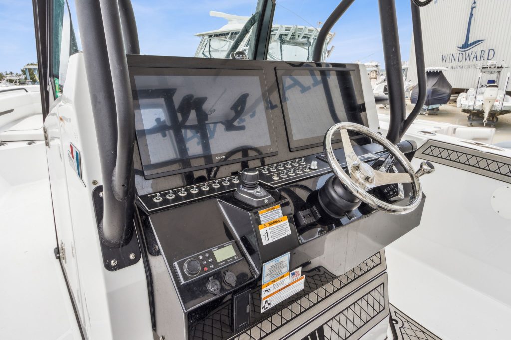 – Triple Mercury Verado 350s with digital throttle, power steering, and joystick control