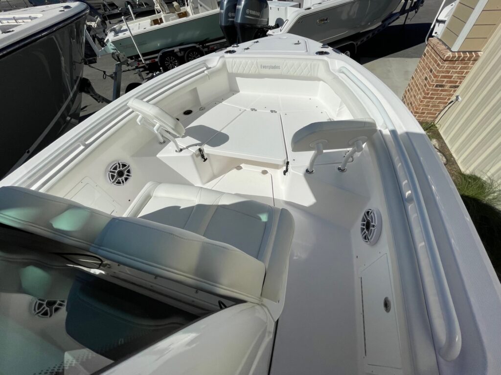 2024 Everglades 235CC, In addition to the generous standard features, this beautiful Sky Blue boat has the following options: Yamaha White 300hp with DES Auto Pilot for Yamaha EX Full hull color with color matched hard top underside Bow casting platform cushions with filler cushion Removable bow backrests Ladder for side access reboarding door with storage JL Speakers with LED M6 upgrade Lighting, full color Spectrum, hard top & deck Lumitec light bar – 18″ low profile spot light Porta-potty with deck pump out (no macerator) Electronics Prime package – Garmin VHF 215, GPSMAP 8612xsv with B175 high-wide transducerStop by or give us a call today! 2024 Everglades 235CCAn Entirely New Class of Entry-Level Performance Center Console Boats.Debuting at the 2020 Fort Lauderdale International Boat Show, the all-new 235cc takes center stage. Size matters and Everglades has taken expectations “next level” for the entry-level center console category.Built upon our patented RAMCAP high-density hull, the 235cc has innovations and features that make the term “entry-level” outmoded. A fish hunter at its core, the rigidity, and strength of its hull can take you well beyond shallow bays and intercostal waters out into the deep. Powered by a 300hp Yamaha engine package, you can direct its power at the 235cc’s upgraded helm. Digital displays, Bocatech® switches, sliding windshield, and Helm Master controls are perfectly spaced across the helm, giving the captain complete control and superior 360° visibility. Our patent-pending swivel helm seat provides first-ever versatility and keeps the captain comfortable yet stable when facing forward and can be turned to face the stern as a mezzanine seat, providing an alternative cushioned leaning post. Upfront, bow and forward console seating is also improved with larger, more contoured seats and under-seat insulated cooler/dry storage.Below deck, the upgraded console provides a larger head and storage area. Other upgrades and creature comforts include improved bow seating and storage, retractable full transom seating, added gunnel bolsters, and all new powder coated accent color options.When it comes to the hunt, the 235cc is equipped with Everglades’ exclusive fishing DNA. An acclaimed near shore and intercostal fishing boat, the 235cc features a rigging station with tackle tray storage, tackle drawers, tool and leader storage, rigging surface, and four-rod holders. The Transom features a standard 17-gallon starboard circulating livewell with a clear acrylic lid and stainless steel friction hinges and latch. Also included is a standard port side insulated cooler. Bring all your gear and stow it in abundant storage spaces and under gunwale rod racks. Everything has a space and is within reach.Features may include:CONSTRUCTIONUnsinkableLifetime hull warranty and 3 year component warrantyVariable deadrise deep v-hullPatented closed molded RAMCAP® construction processNMMA CertifiedCONSOLEPatented hydraulic sliding windshield with tempered glass and intelligent wiper & washer systemConsole glove box/storage binConsole handrailsConsole power port & USB charging portsStainless steel drink holders (2)HARDTOPFiberglass hardtop with molded in handrail & drainage trough, aluminum powder-coated with hand holds, LED lights, spreader lights, electronics box, (4) rod holders, ski pylonIntegrated hardtop & windshield framePremier audio package – Fusion 770 control head with bluetooth & JL M-series speakers, JL amplifier and subwooferCanvas life jacket storage in hard topDECK / COCKPITAnchor locker with rope hold, anchor storage & fixed cleatAnti-Fatigue helm pad – mocha or storm gray6” pull-up cleats cast 316 stainless steel & through bolted (6)Stainless steel drink holdersRecessed cockpit drainsMECHANICAL & ELECTRICALAutomatic bilge pump(s)High-water alarmLED anchor light & navigation lightsLED courtesy lightingElectric horn