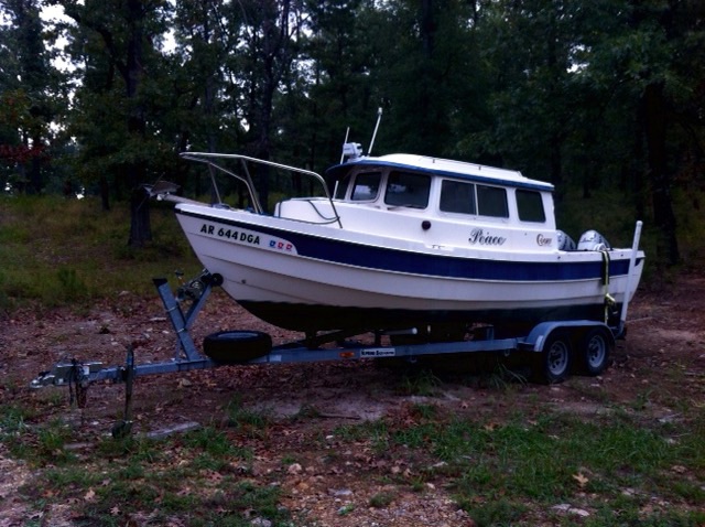 Twin Honda 50hp – Low Time – Marine Radio – GPS/Depth Finder – 2×25 Gal. Fuel Tanks – Windless Anchor – stove – sink – Fresh Water Tank – Trailer With Surge Breaks