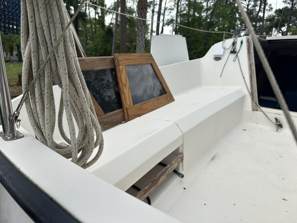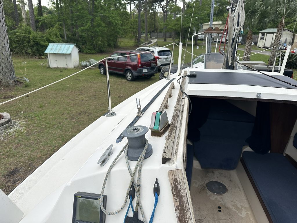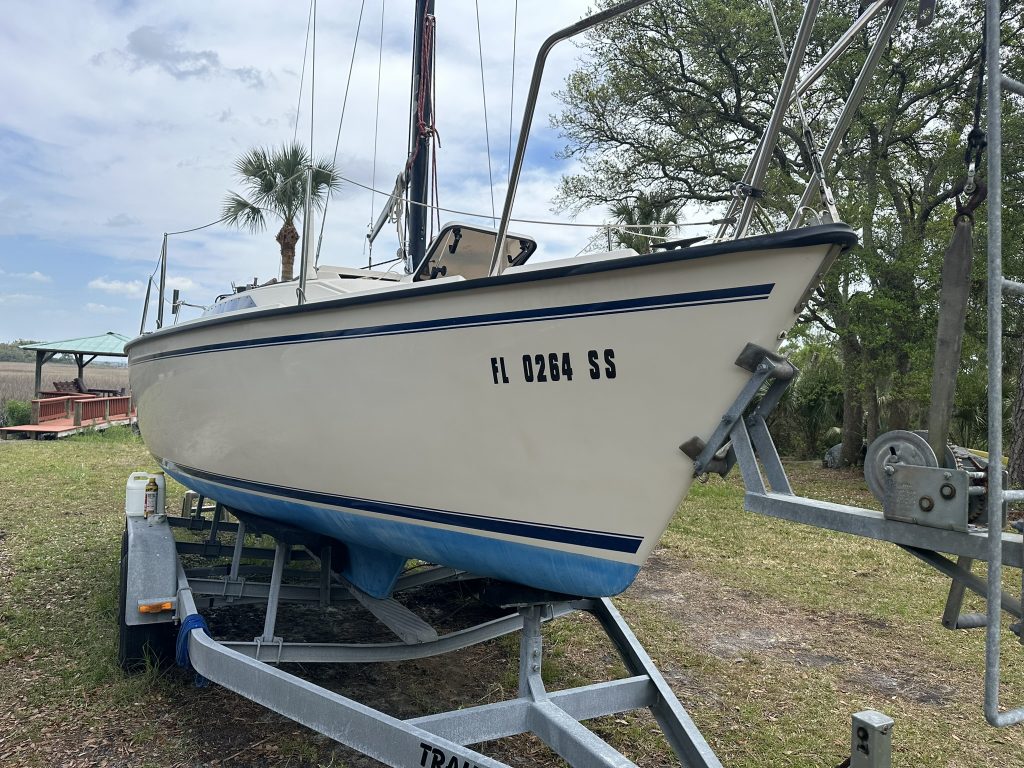 • 1987 Precision 23 trailer sailer, 23.5 length, 8.5 ft beam, 2 ft draft with swing keel up (full draft is 5 ft +-
