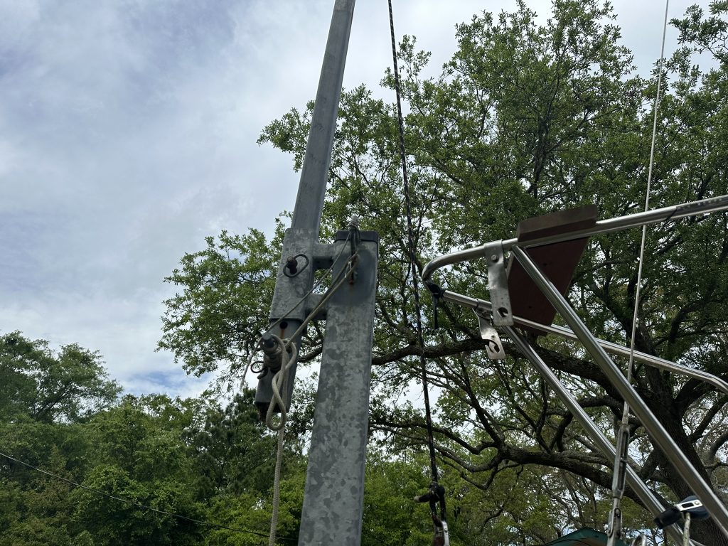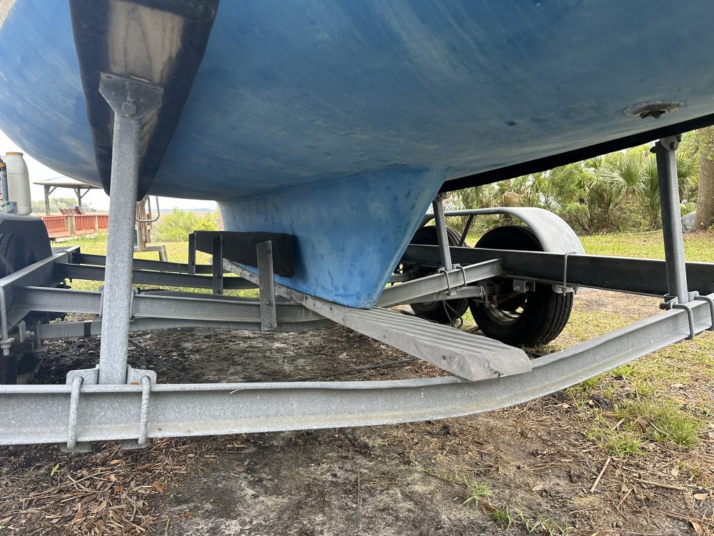 • Twin axle galvanized ?Trail and Sail? trailer by Road King with mast stepping system.