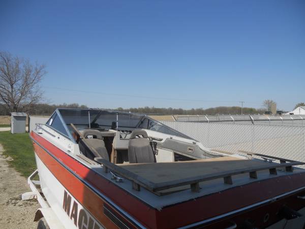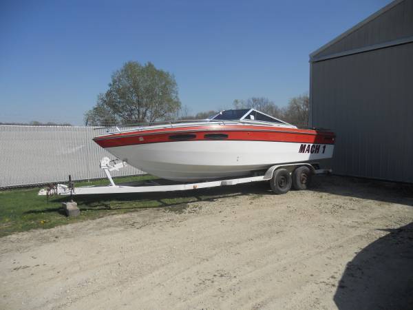 This boat has a 350 magnum with a 350 out drive , power steering and tilt and trim. It’s a cool, old boat. It does need new seats, but it runs awesome. If you have any questions,