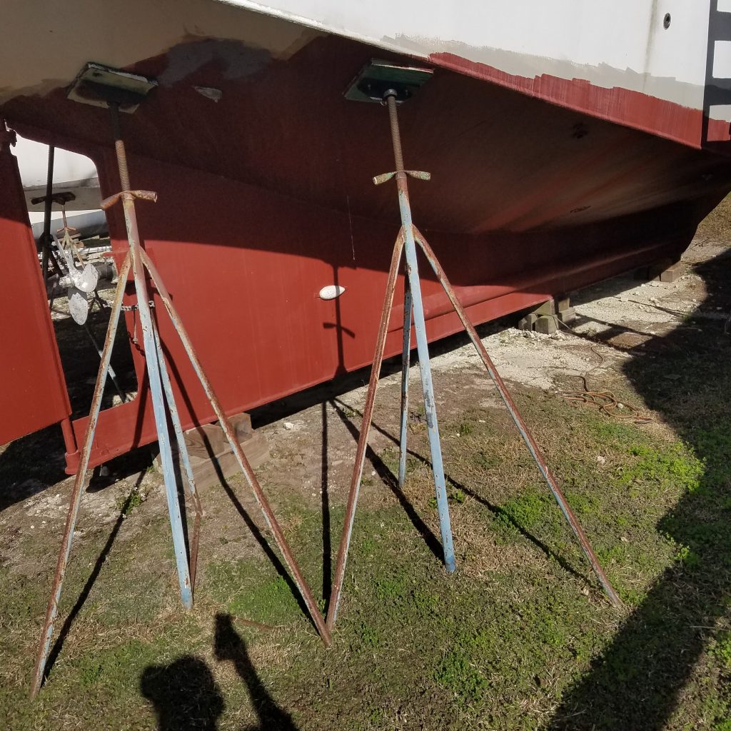 **STEEL CONSTRUCTION HULL AND KEEL** -1/4 , BOTTOM AND SIDES 3/16 , DECK 10 GA. ( ALL MILD STEEL- FRAMES 5/15X 4″ LONG TUDINALS 5/16 X 2″ @ 10″ CENTERS WITH 6000# BALLAST