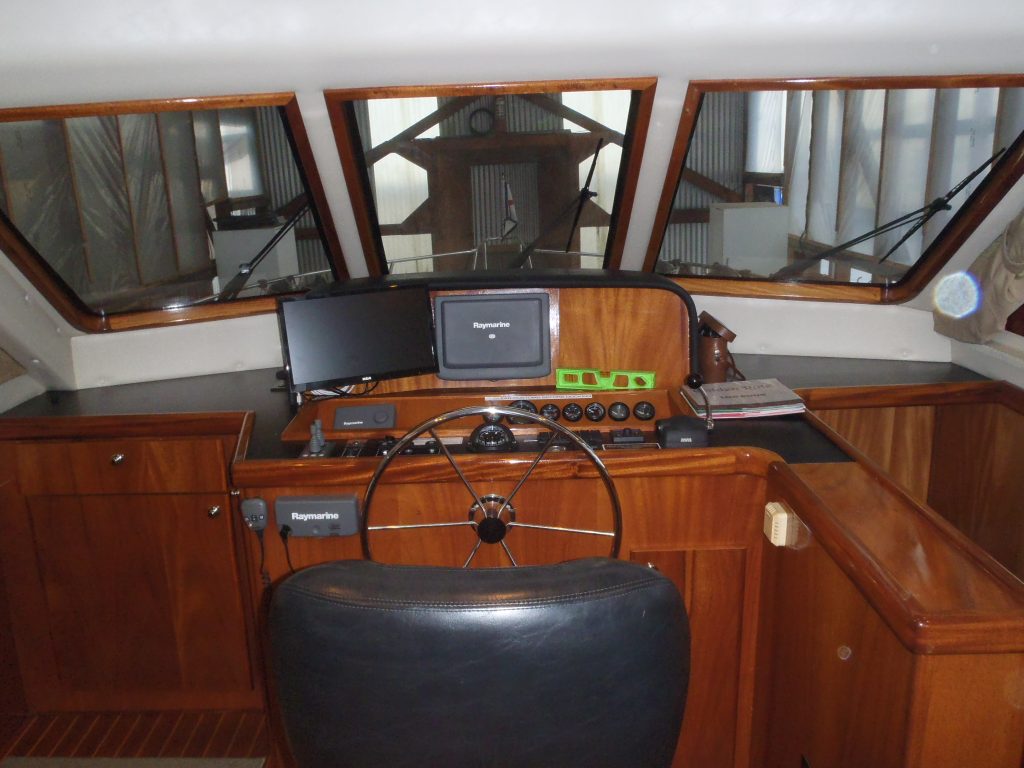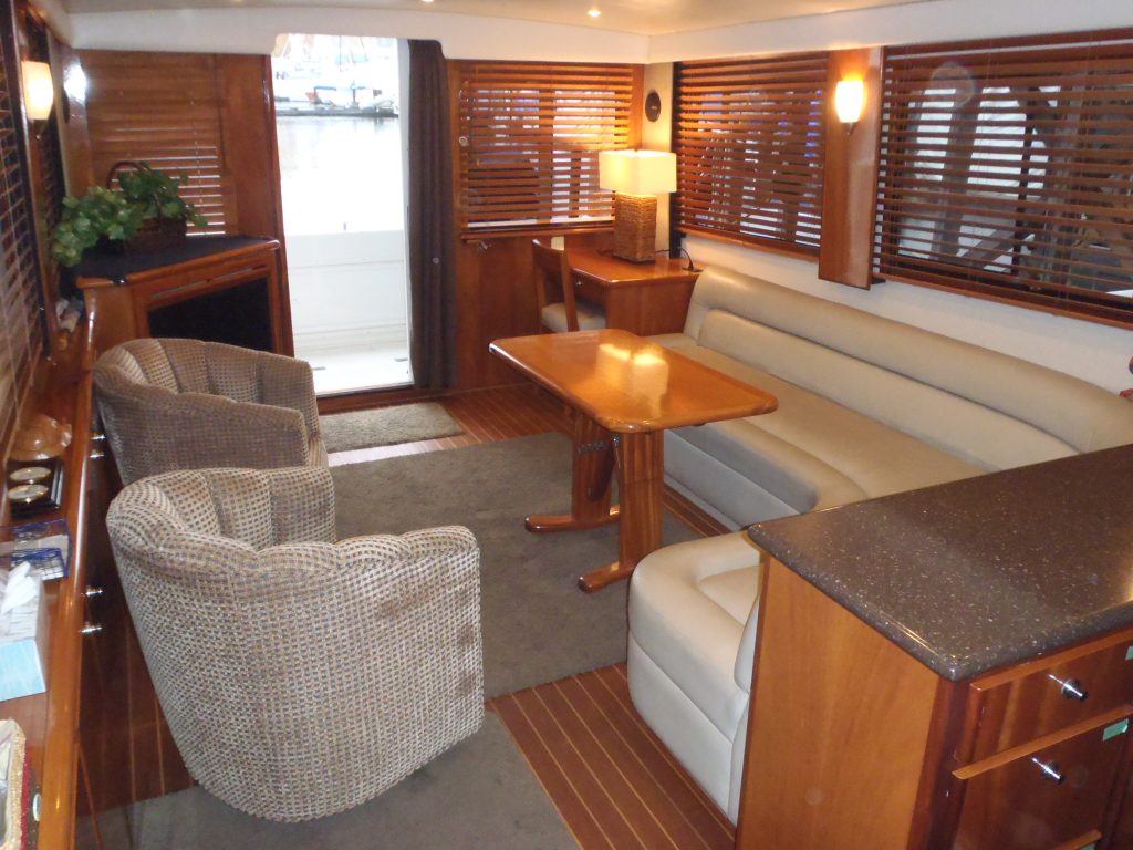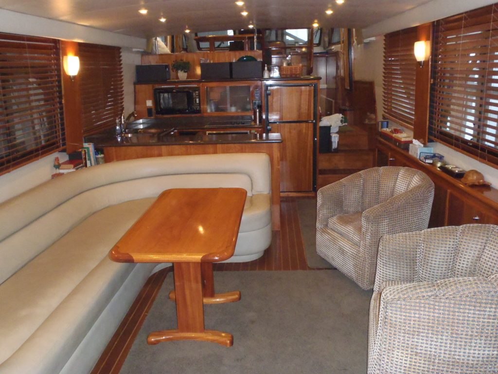 This late model boathouse kept 55 LRC gives the best of both worlds with a single engine for economical cruising and the ability to get up and go when speed is needed. She can cruise all day at 13 knots or slow down and sip fuel at trawler speeds.