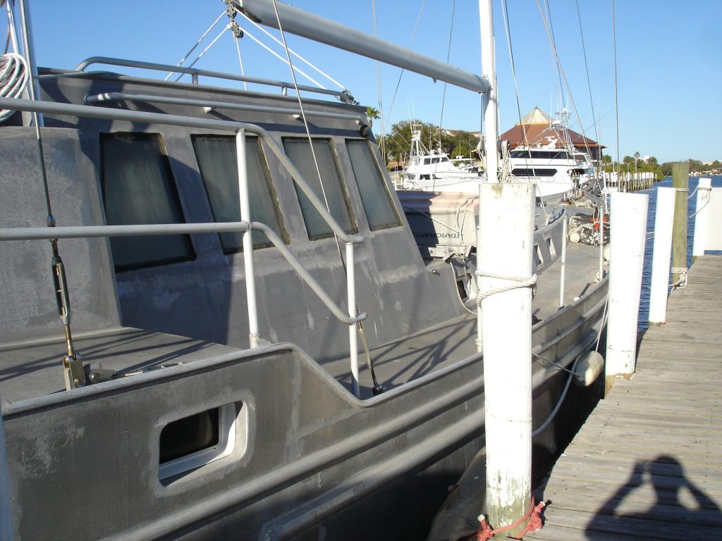 This rugged Island Cargo vessel, **aluminum “5083”** marine grade, MotorSailer was built by Topper Hermanison in Ferandina Beach, Florida. This world class vessel is , go any where, anytime. The range of 1000 kt miles under power, unlimited with sail. the current condition alows sail or power to your port of choice for inteiorr woodwork re-fit and exterior finnish. 60,000# of aluminum, 3,200# lead ballast. Hull 5/16 , keel (3’6″ width at hull & 2’6″ at foot) 1/2 with full length ,3/4 shoe, 3/8 topsides, heavy stringer’s and rib’s.NEW info- owner has 33,080 poured LEAD ballast in keel!
