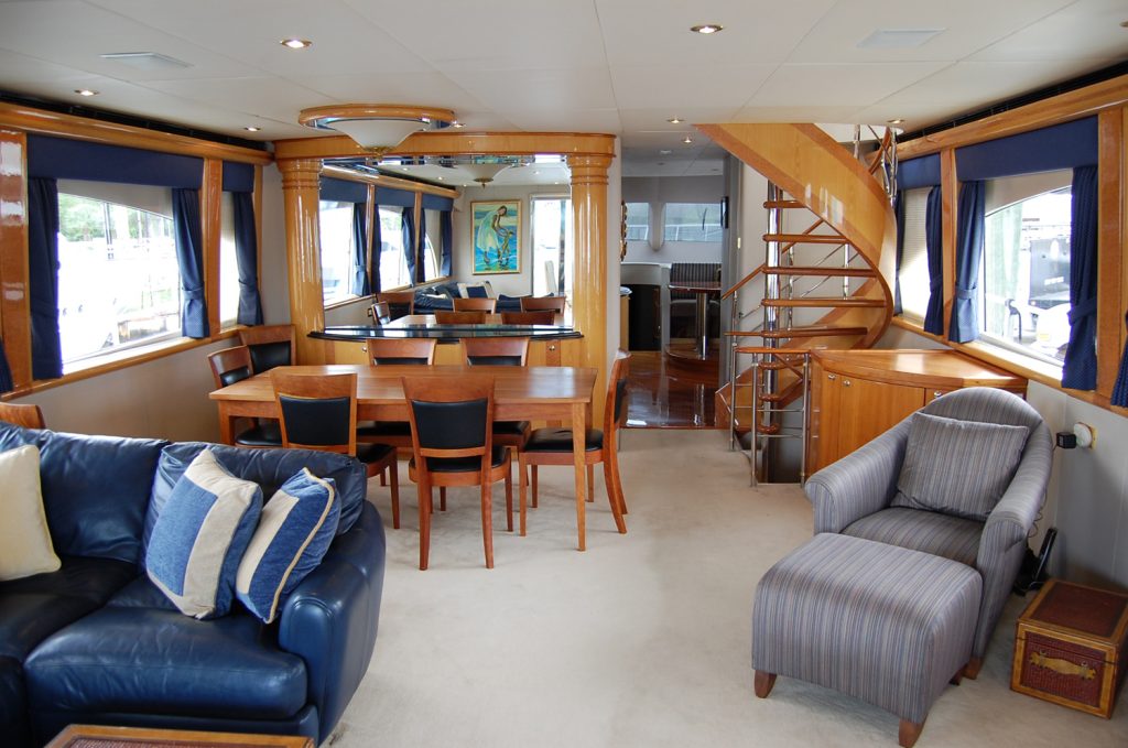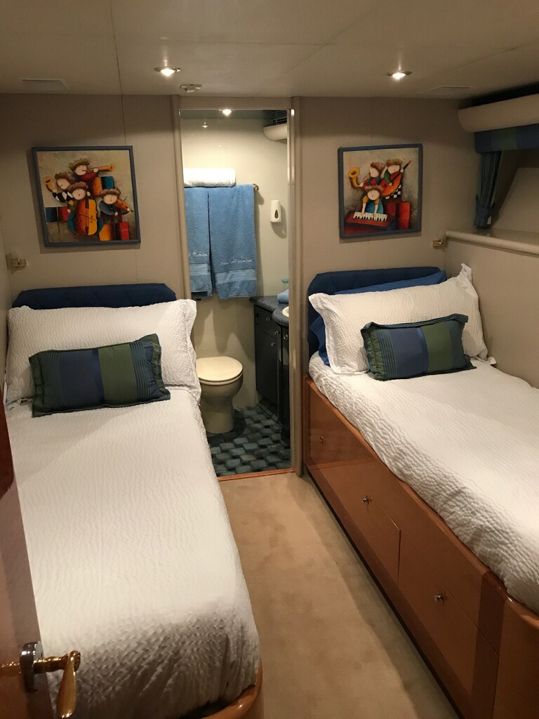 Moonshine is one of the best opportunities on the market. She is a two owner boat and the owner’s dedication reflects to her condition. She offers a great layout with crew forward allowing plenty of space for the engine room aft making it easy to service her CAT 3412’s and Northern Lights generators. This layout is an owner operator’s dream as the forward crew can be used as extra guest area with 2 additional staterooms and office. She is US duty paid and available for all buyer’s. Moonshine is ready for viewing in beautiful and historic downtown Charleston, SC.