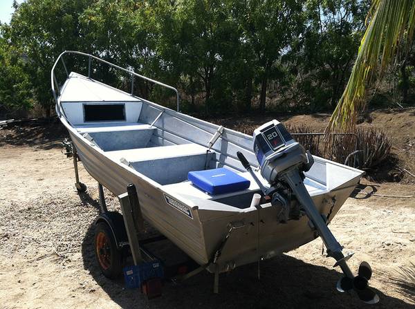 Great for beach launching. 20 Horse Evenrude motor. Runs great!