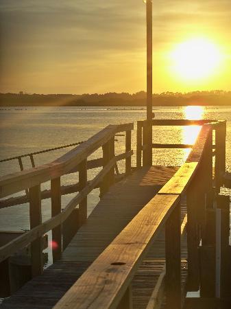 The trees, scarred by fire, still lean over the water, framing the ever-changing sunset. Wading birds feed along the shoreline while pelicans beg from fishermen on the docks. Occasionally, a manatee or dolphin will swim along the shoreline while passing boats cruise the channel.