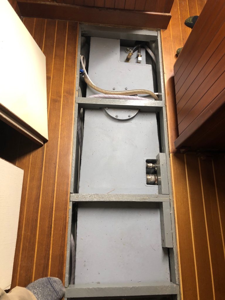 Bottom coated with west system epoxy and painted with petit SR Trinidad paint, 2019