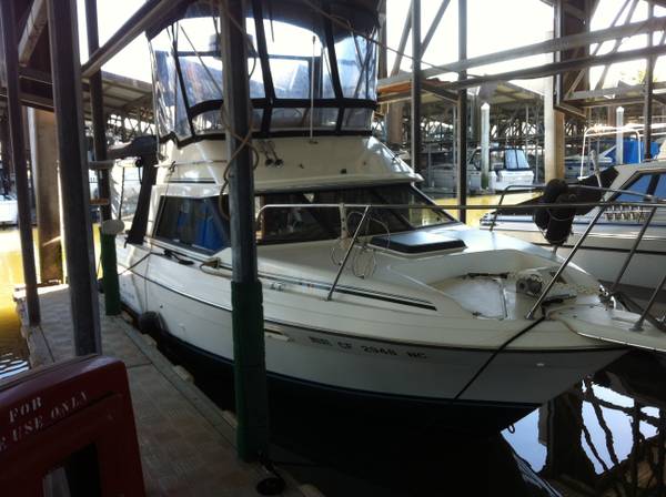**Bayliner 2556 Cierra Convertible 1991** Command Bridge, excellent condition, 473 hours,well maintained, recently serviced including outdrive rebuild, engine tune, fluid change and bottom paint. Have all service records. 454/Bravo 2, Full delta canvas including fly bridge. Full electronics for both stations including Lowrance GPS/mapping/fishfinders , VHF radios and. radar (lower station). Full galley including AC/DC refer and alcohol stove. Full head including shower. Hot water heater. AM/FM/Disc player.