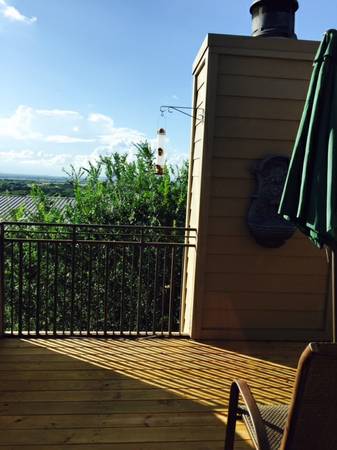 2 bedroom 1.5 bath with wood burning fireplace. Tastefully updated throughout with granite countertops and stainless appliances in 2011. Brand new StainMaster carpet and shiny new toilets Summer 2015. Deck replaced in Spring 2015. Approximate $238 monthly HOA dues cover water, trash, gorgeous park-like grounds with pool. Also covers maintenance, insurance for exterior. Single floor living…..one flight of stairs to entrance from covered carport. Gorgeous views and sunsets! Beautiful birds and wildlife to view! Association allows up to two pets! Located in the High Vista complex within a mile of the lake, resort, world class golf courses and the airport!