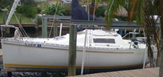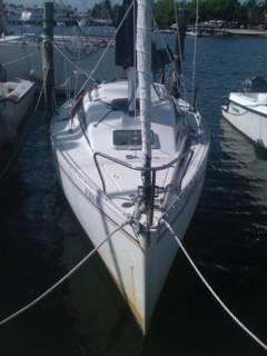 Plumb bow slices through the water. Wing keel is great for shallow waters. Has v berth and small cabin beneath the cockpit.