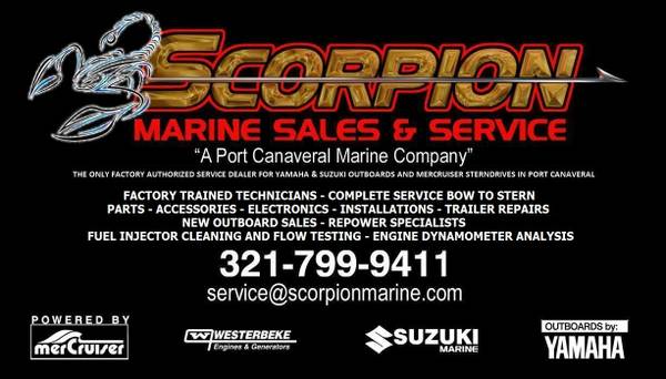 Bow to stern. Parts, accessories, and installations; Factory authorized Yamaha, Suzuki, Mercruiser, Westerbeke. New outboard sales and repowers-call for a quote. Fuel injector cleaning and flow testing. Engine dynamometer analysis. Trailer repairs.