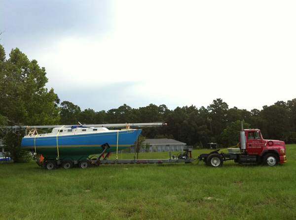 Our big trailer can handle sail boats or power boats 45′ long 30,000lbs and we use a semi truck to ensure proper and safe arrival of your boat.