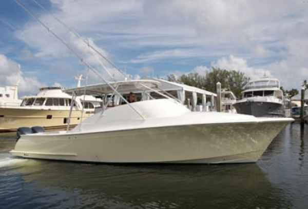 This relatively new company has an impressive built-in history. Founder Roger Brooks comes from a family of watermen and has borne the passion since childhood. Since his teenage years, he has worked for some of the finest boatbuilders in the country – each time learning more of his trade. Companies such as Sea Ox, Sea Ray Boats, Fountain Powerboats and Albemarle Boats taught him valuable enough skills that today he builds molds and tooling for other major builders in addition to his own custom boats. I was able to run his newest custom hull, the Brooks 34 Express, just after the Fort Lauderdale Boat Show.