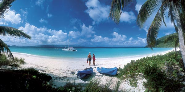 Clear blue water, warm tropical breezes, lush green island palms, white sand beaches