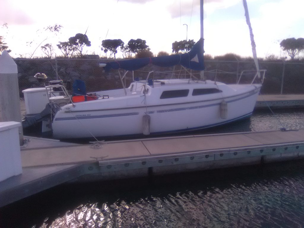 CATALINA 25 C250 WING KEEL MODEL GOOD MAIN SAIL,NEEDS NEW JIB SAIL. HAS 8 HP YAMAHA LONG SHAFT OUTBOARD MOTOR 2006 MODEL. HAS HEAD PORTA POTTY SINK IN HEAD. GALLEY ONE BURNER PROPANE ,STAINLESS STEEL SINK,COUNTER TOP,SMALL 120 VOLT REFIGERATOR.SLEEPS 6 ,4 ADULTS 4 CHILDREN,HAS COMPASS ON TOP OF STAINLESS STEEL STEERING WHEEL,I ALSO HAVE THE TILLER HANDLE.GEL COAT IN FAIR CONDITION NEEDS COMPOUNDING AND BOTTM JOB PAINT .DOCKED IN CHULA VISTA ,CALIFORNIA AT CAK YACHT MARINA CALL ME IF YOU WANT TO SEE IT.ELLS 9796658318 OR 4422648157 ASK FOR JOHNNIE COSBY I HAVE PHOTOS JUST CALL ME NO TEXT PLEASE.