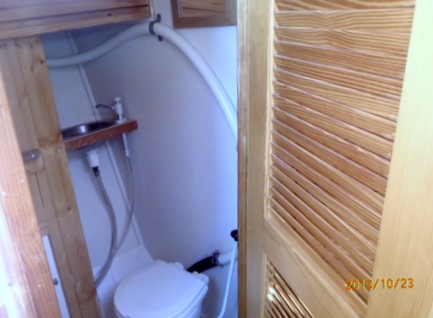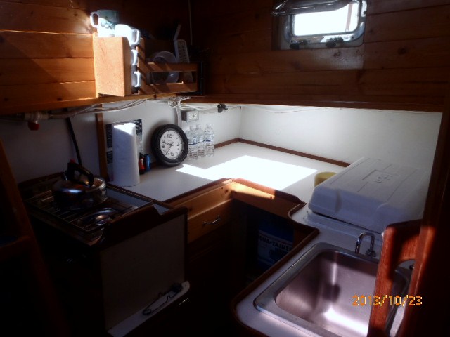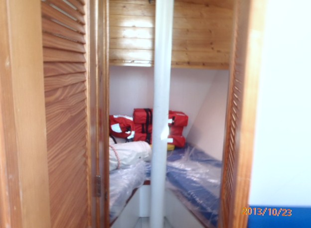 TWO CABIN V BUNKS ( DINETTE IN FWD CABIN NAES INTO LARGE BED , GALLEY AND HEAD WITH SHOWER (LEE VAC-HEAD) FOLD DOWN CHART TABLE .