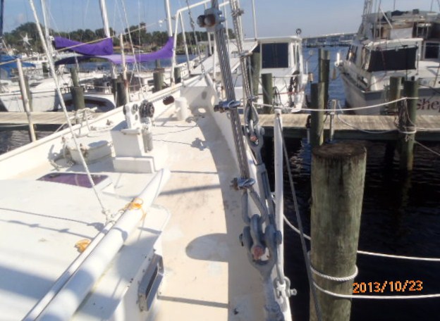 of handling, efficiency to windward and safety. Can be sailed singlehanded. Proven bluewater cruiser. 67,000 miles Atlantic, Mediterranean, North Sea, Baltic and Caribbean cruising. Original owner. Very safe in heavy weather.