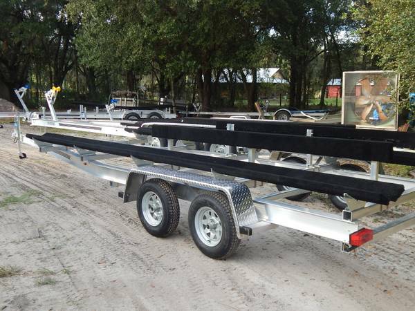 Our company builds custom Aluminum Boat Trailers at a great price we have one of the best production manager around he has been building these trailers for 36 years. We can even build the new OYSTER boat trailers that the manufacture is doing a great job that we build a lot of trailers for. Give us a call it is hard to beat our prices the list below is the standard package for our trailers: