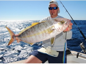 In the spring, summer and Autumn, it is also a good time to go trolling along the coast (In-shore trolling) . The areas of bluefish and leerfish are fished close in along the coastline, at a depth of about 7-8 meters with natural bait (small garfish and sea pikes, etc.). The Atlantic bonito and dolphinfish are fished a bit further out from the shore, in waters that range from 50-80 meters in depth. During the winter months, we do mostly deep sea fishing for red bream, red porgy, green wrasse, white sea bream, and others.