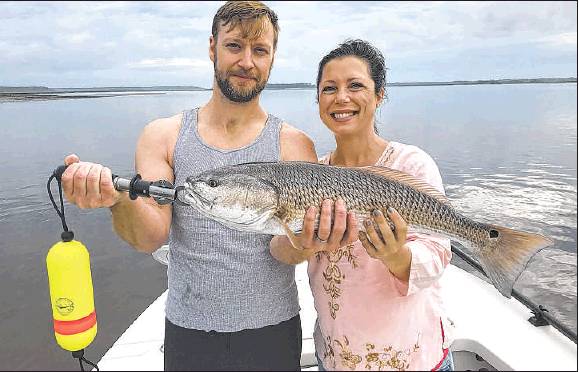 *Jacob and Michelle Pulco, of Nocatee, with a nice Palm Valley redfish caught with Captain Leon Dana of Prime Time Chargers this week.*