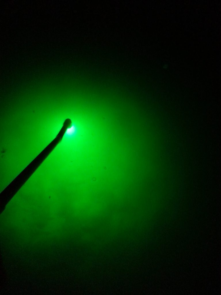Wizard Wand Flounder Gig Light, is a LED , 12 volt flounder gig light that comes in either white light or green light. The white light works better in clear water the green light works better in murky water. These lights work off a 12 volt battery, 7.5AH or better and will last approx. 6 hours on a full charge. The Wizard Wand Flounder Gig Light weighs 1.8 pounds so it easy to carry and moves through the water with ease.