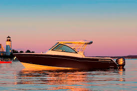 Grady-White’s new flagship, the Freedom 375 leads the dual-console outboard category in size. Bigger and beamier than the Freedom 335, it is built on the same C. Raymond Hunt-designed SeaV2 hull as the popular and proven Canyon 366. Billed as a multifunction boat, the 375 adds a large measure of comfort and convenience features — both family and entertainment oriented — to create a varied-purpose fishing boat.