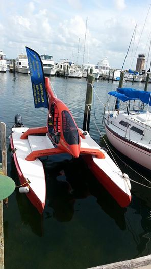 Open air feel and thrill like a motorcycle but without the traffic danger! Goes 20-30 mph in whitecap waves at 5 mpg–not possible in other boats. It is very safe in very rough water conditions because waves can wash over the boat and there is no place to store the water like a typical boat cockpit and it has two independent motor/fuel/electrical systems for redundancy. It can go 15 kn with one motor.