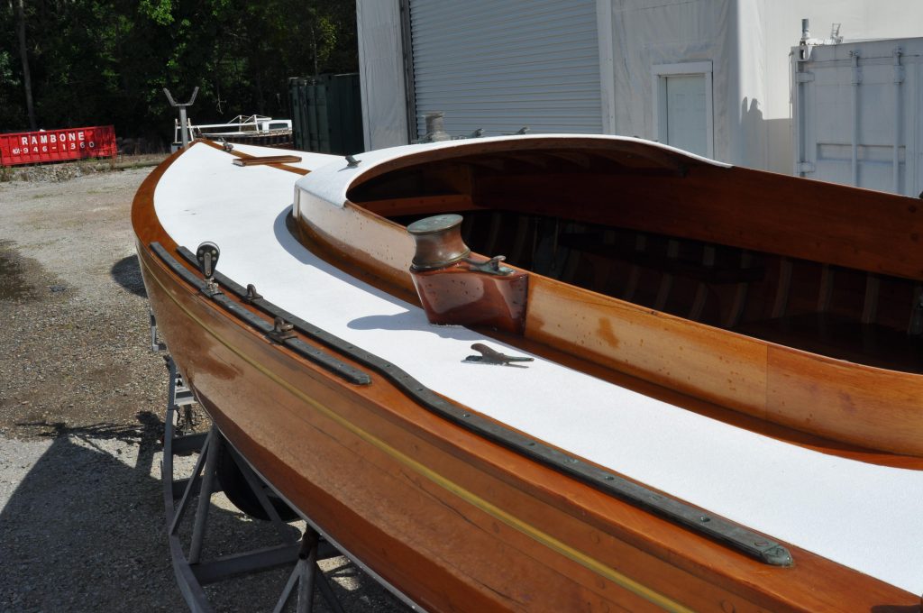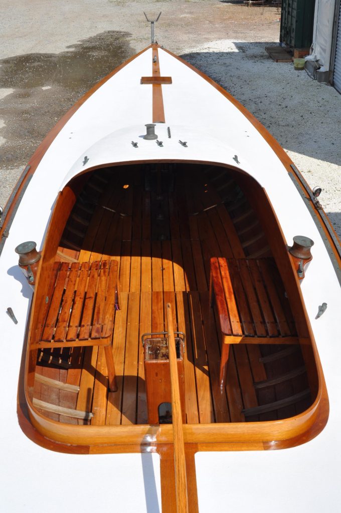 This original 12 1/2 (hull #1397 complete with builder’s plate) has been restored with the utmost effort and detail to ensure her structural integrity and beauty, while maintaining her originality. Among a long list of work, she received 15 new frames, three new floor timbers, new canvased cedar decks and bulkheads, along with new mahogany coamings.