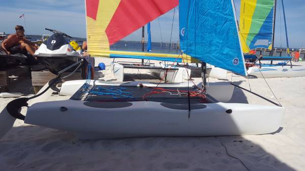 2005 hobie wave like new. brand new trap, brand new grey seat pads, sails are in great shape and this boat comes with jib kit, the trailer is also is great shape!!! this boat has the ez lock rudders so you do not have to deal with locking cams. will also come with a set of beach trax.
